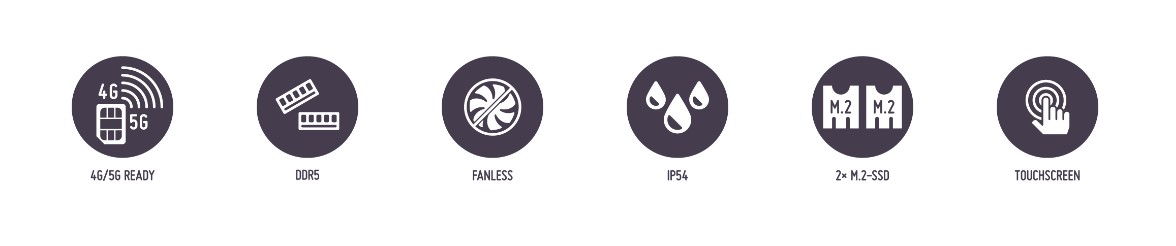 All-in-one počítač Shuttle XPC X50V9U3 je najnovším prírastkom do série X50 a je poháňaný procesorom Intel ULV Gen12/13. Moderná architektúra procesora pomáha znižovať spotrebu energie a výpočtový výkon. Existujúcu funkciu WLAN je možné voliteľne doplniť funkciou 4G/5G s až 4 anténami. Vďaka pasívnemu chladeniu tepelnými trubicami je systém prakticky nehlučný, bezúdržbový a schválený pre nepretržitú prevádzku 24 hodín denne, 7 dní v týždni. Obzvlášť vhodné pre vertikálne aplikácie je usporiadanie konektorov v spodnej časti a predný panel s krytím IP54, ktorý je chránený pred prachom a striekajúcou vodou.